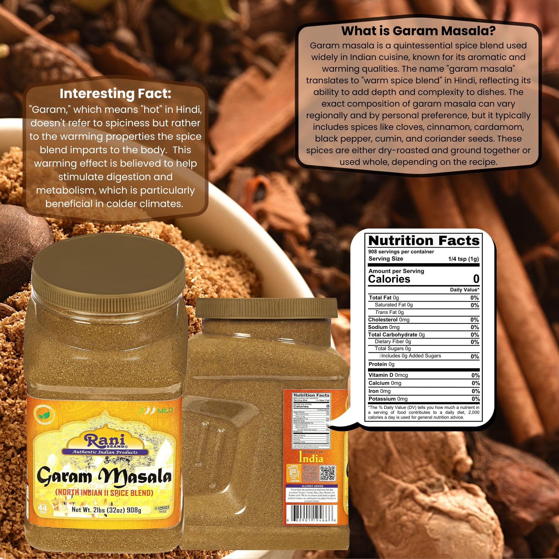 You'll LOVE our Garam Masala by Rani Brand--Here's Why: Authentic 11 Spice Blend Traditionally from Northern Indian, garam masala is a staple spice in Indian cookery. Garam, when translated means “warm” best describes the properties of the blend. Warming ingredients...